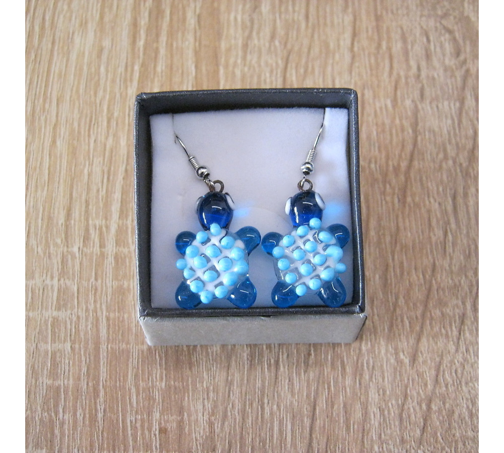 Originální náušnice ze skleněných miniaturek - tyrkysové želvičky.