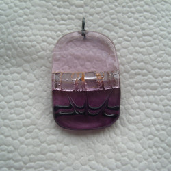 Skleněné přívěsky různé tvary, barva světle růžová + fialová s plátkovým stříbrem uvnitř, navrchu zdobené černou nití.