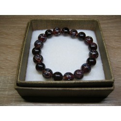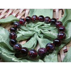 Náramek z vinutých skleněných perlí - tmavě červené kuličky 10mm , zdobené avanturinem, skleněnou drtí a růžičkami.