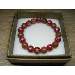 Náramek z vinutých skleněných perlí - kuličky 10mm červené barvy, zdobeno skleněnou drtí, avanturinovou nití a růžičkami.