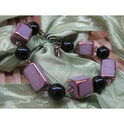 Vinuté perle kostky a placky ze syté fialové. Kámen kuličky 10 mm z černého onyxu.