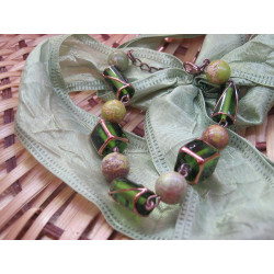 Originální náramek z vinutých skleněných perlí a kamenů citronový magnesit.