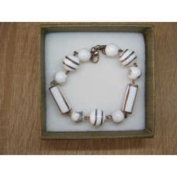Originální náramek z vinutých skleněných perlí a kamenů bílého howlitu.