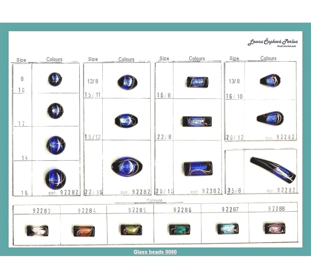 Kusové vinuté perle dle vzorové karty - různé tvary a barvy.