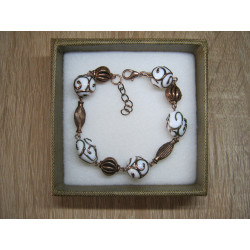 Originální náramek z vinutých skleněných perlí a komponentů z mědi.