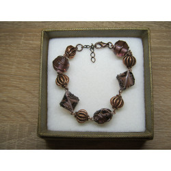 Originální náramek z vinutých skleněných perlí a komponentů z mědi.
