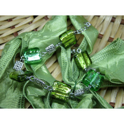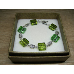 Náramek z vinutých skleněných perlí s plátkovým stříbrem, doplněno o ocelové a bižuterní komponenty.