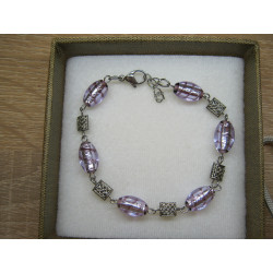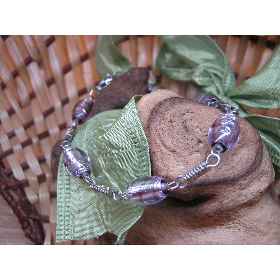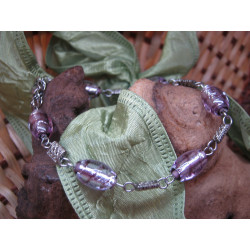 Náramek z vinutých skleněných perlí s plátkovým stříbrem, doplněno o ocelové a bižuterní komponenty.