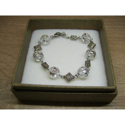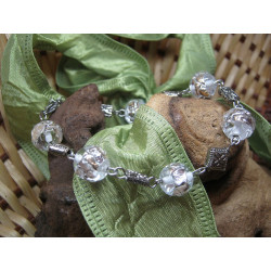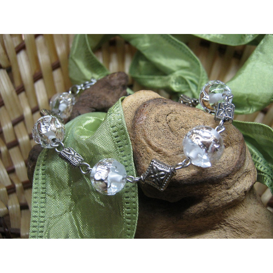 Náramek z vinutých skleněných perlí s plátkovým stříbrem, doplněno o ocelové a bižuterní komponenty.
