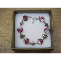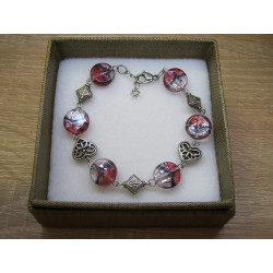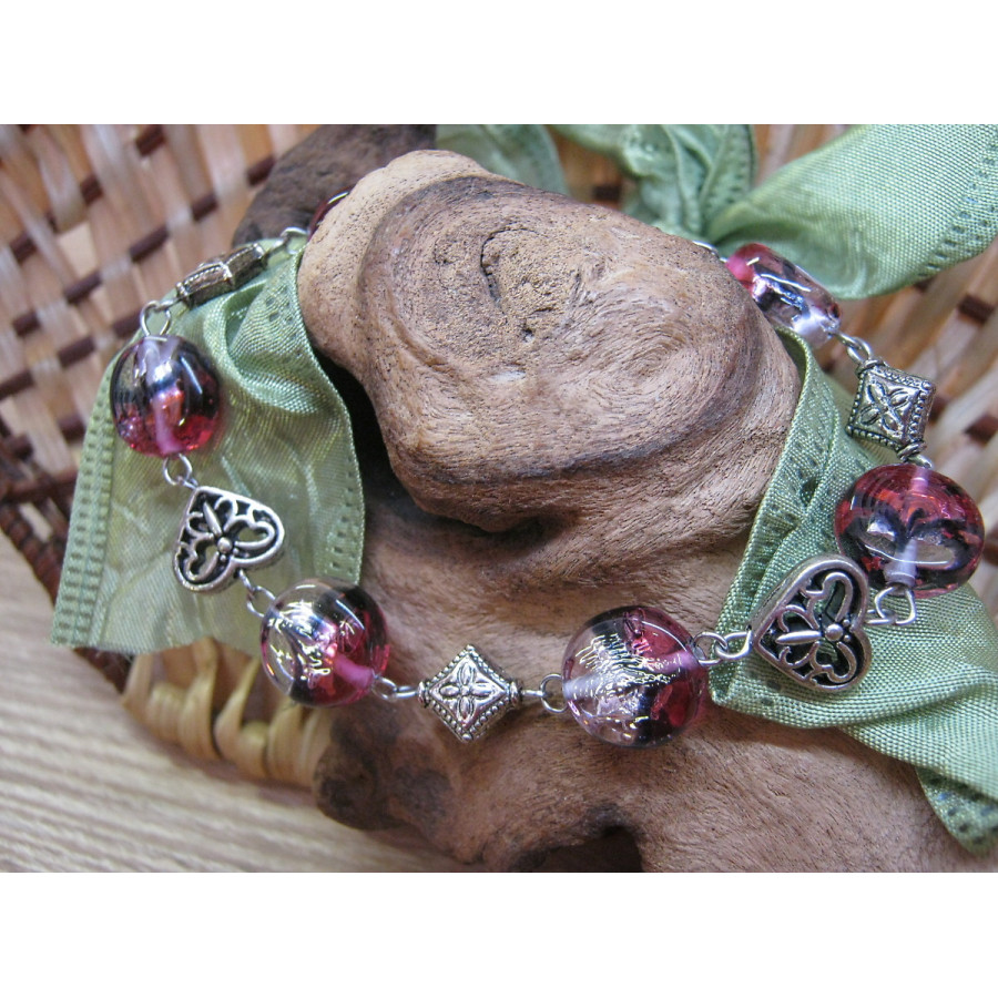 Náramek z vinutých skleněných perlí s plátkovým stříbrem, doplněno o ocelové a bižuterní komponenty.