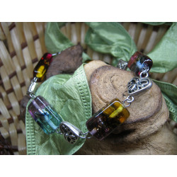Náramek z vinutých skleněných perlí s plátkovým stříbrem, doplněno o ocelové a bižuterní komponenty.