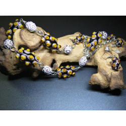 Set of wound glass beads and steel and jewelry components. Necklace length approx. 50cm.