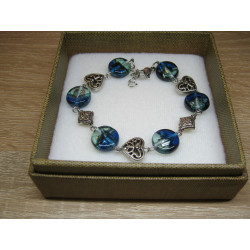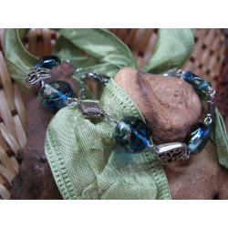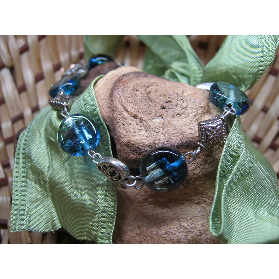 Bracelet made of wound glass beads with silver foil, complete with steel and jewelery components.