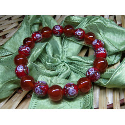 Bracelet made of coiled glass beads - 10mm balls red color, decorated with glass crumb, aventurine thread and roses.