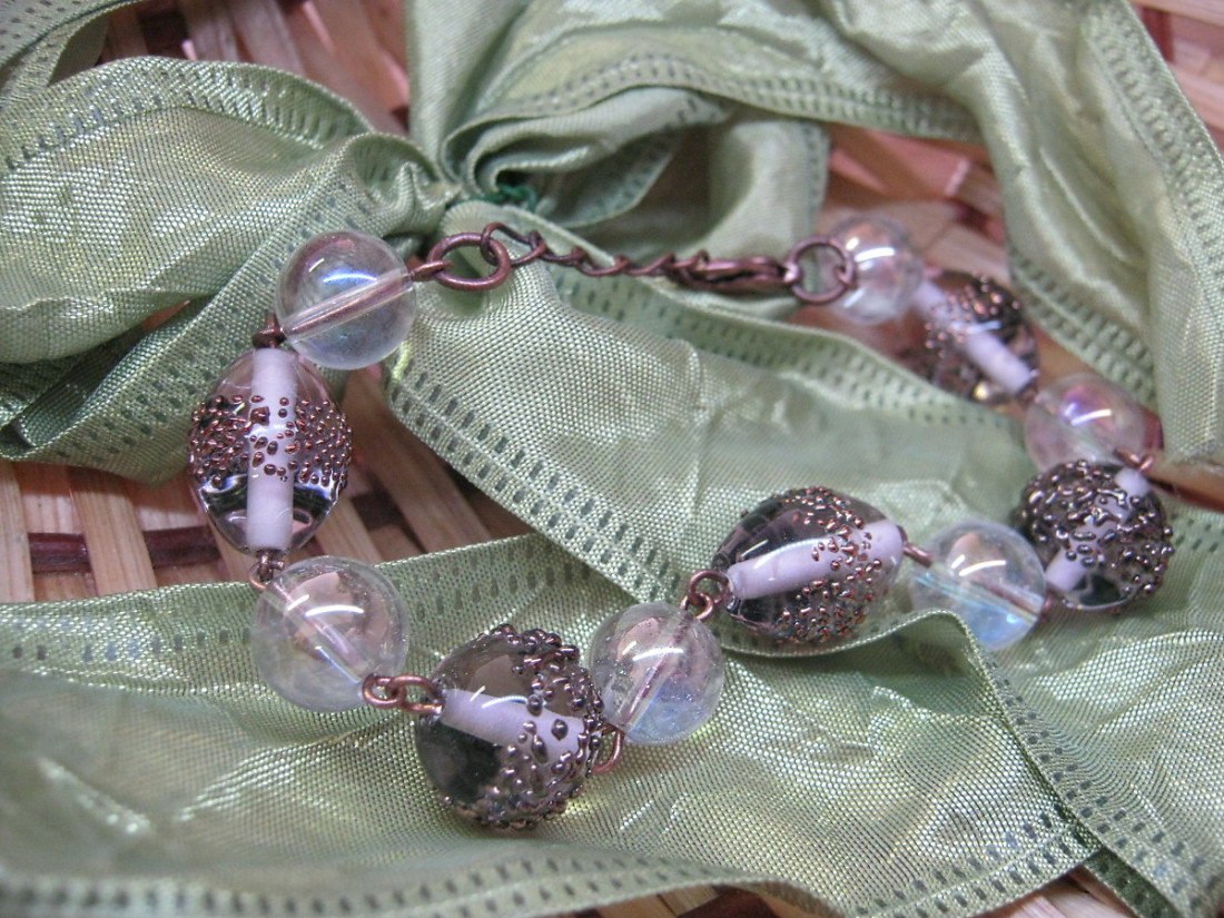 Coiled beads delicate pink balls and olives. 10 mm ball stone made of crystal.