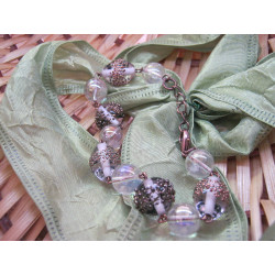 Original bracelet made of coiled glass beads and crystal stone.