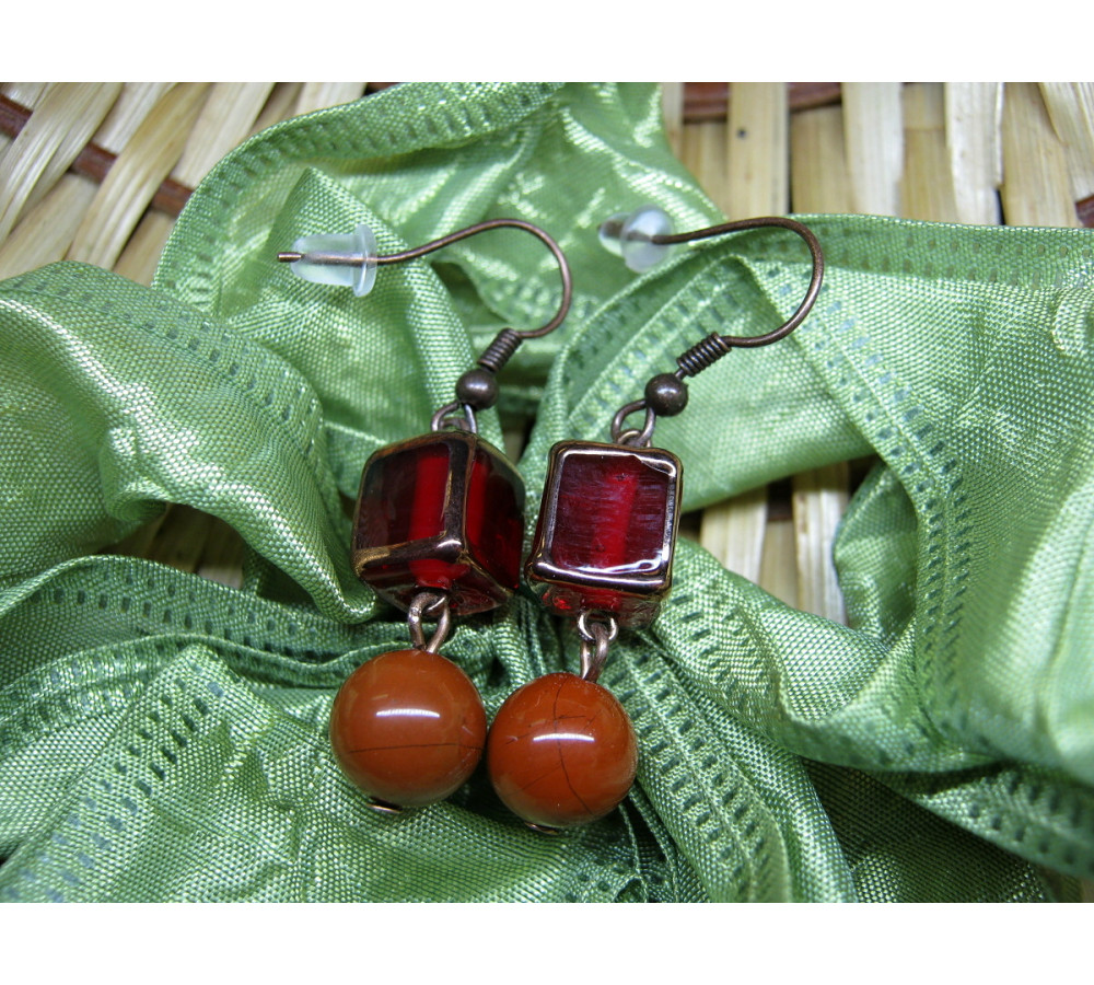 Winding beads red cubes 8mm decorated in copper, red jasper ball with a diameter of 10mm, complete with copper components.