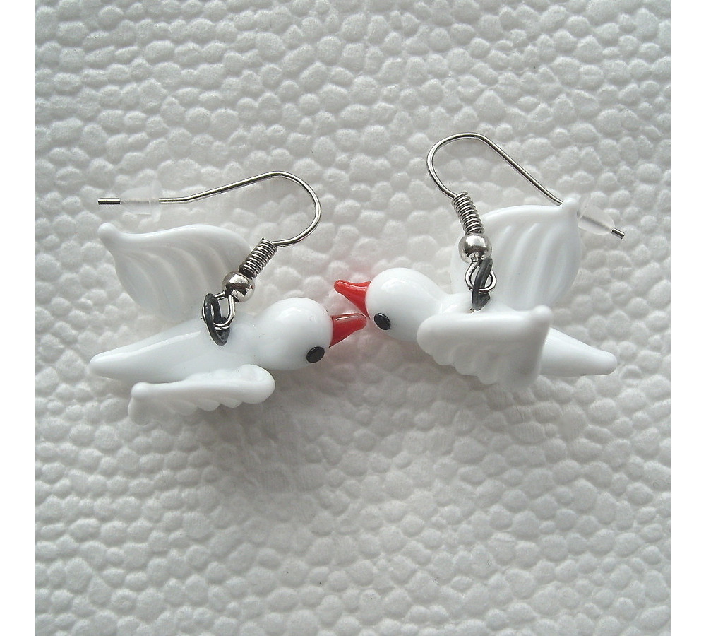 Original earrings made of glass miniatures - doves.