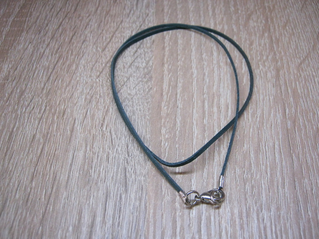 Leather with fastening flat, optional length, width approx. 1.5 to 2 mm. Dark teal color.