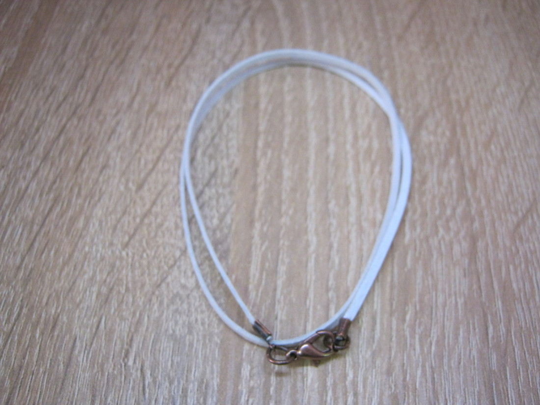 Leather with fastening flat, optional length, width approx. 1.5 to 2 mm. White color.